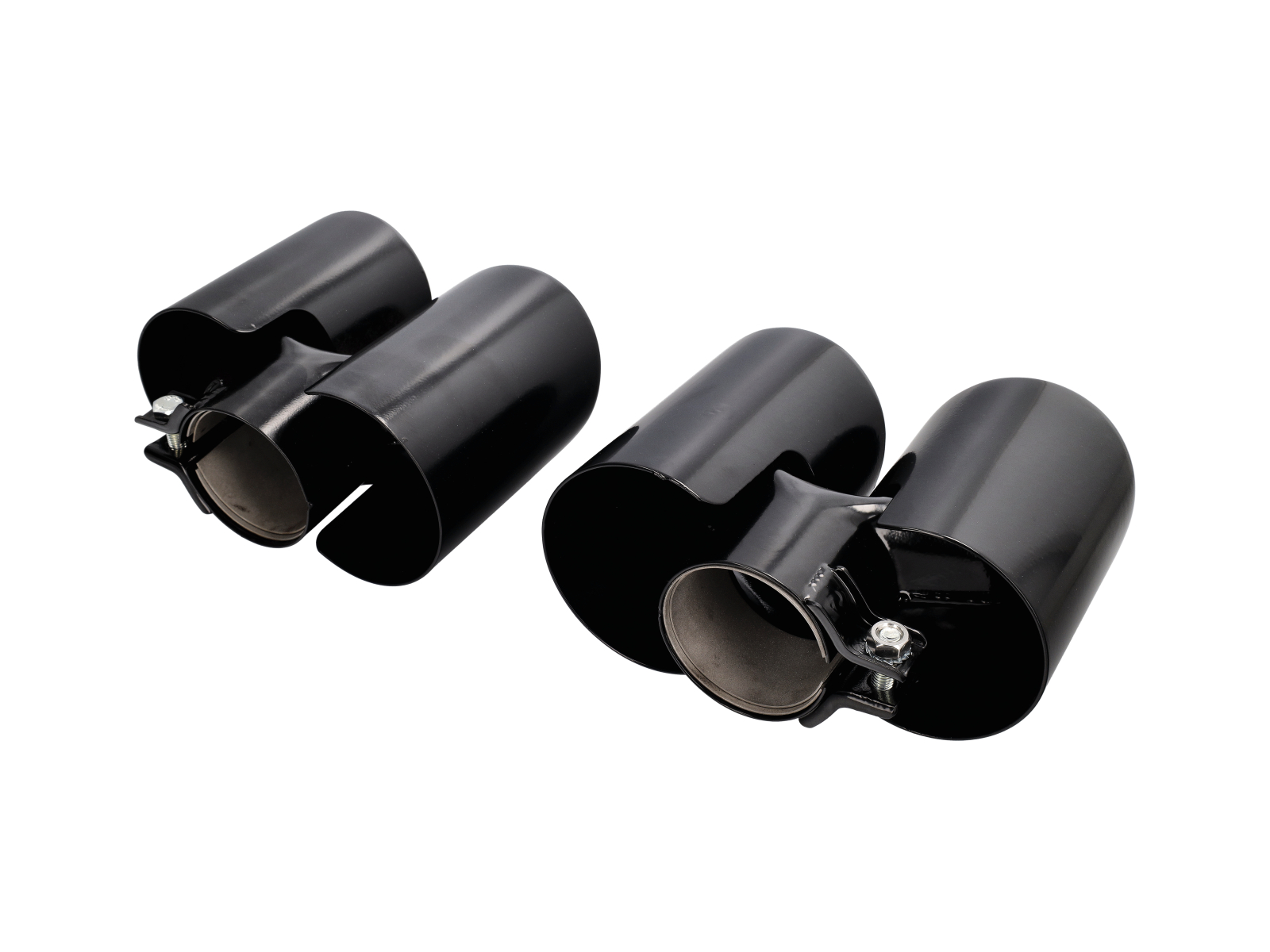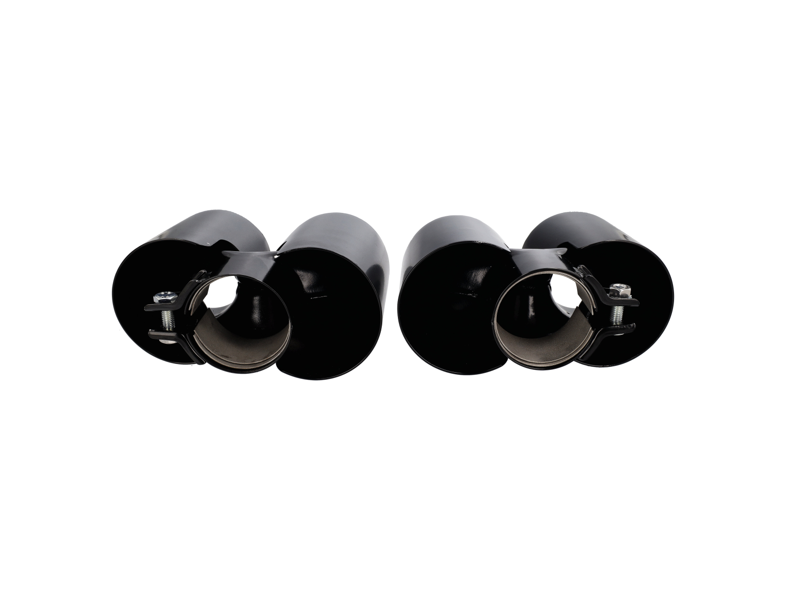 Tuyaux d'échappement en acier inoxydable en noir satiné. Ces embouts offrent un look plus agressif tout en conservant un style « S » d'usine.
