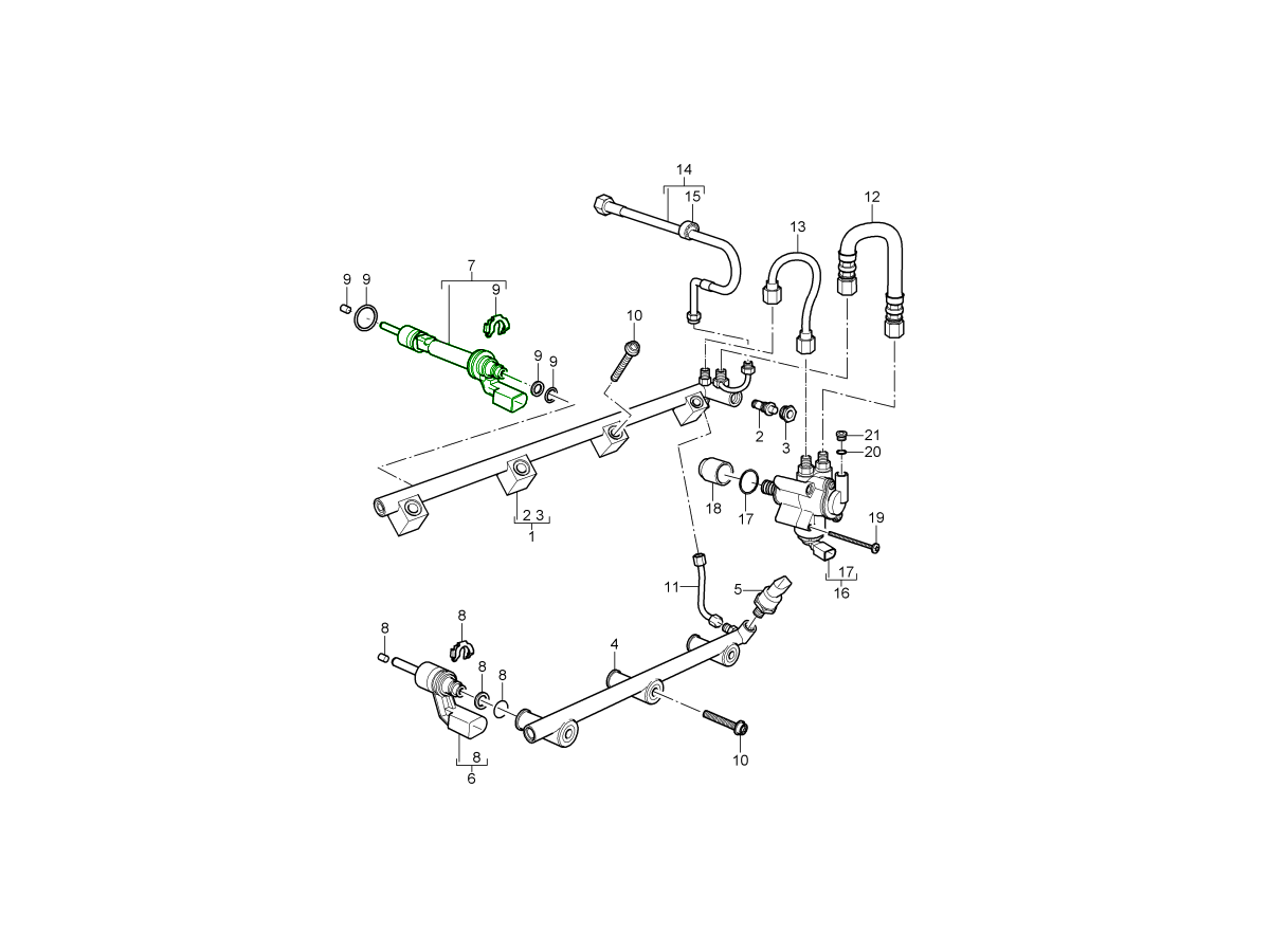 The upper fuel injector is designed for the Porsche Cayenne