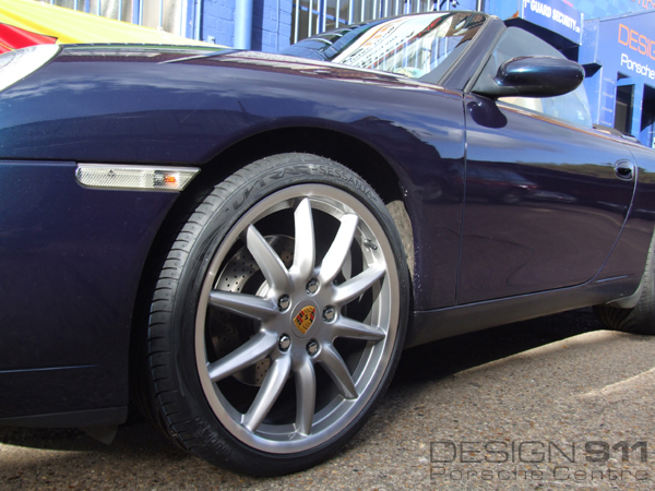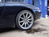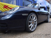Porsche 996 Carbio Carrera 2 Équipée de jantes en alliage 19" Style 519 8.5J ET55 et 11.5J ET67, les roues avant sont équipées d'entretoises de roue DesignTek de 15 mm. Les boulons de roue sont également en acier inoxydable DesignTek pour finir le look impressionnant.