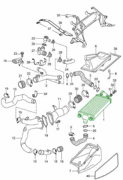 Les échangeurs intercalaires contrôlent le flux latéral sur leurs 40 cm de longueur. Ce circuit intégré est largement suffisant pour les 996 TT ou GT2 les plus performantes, jusqu'à 900 ch. Les échangeurs intercalaires DesignTek Porsche offrent un débit élevé et une réduction spectaculaire de la température, principalement grâce à deux facteurs clés. Premièrement, cette réduction importante de la température est obtenue grâce à des faisceaux d'échangeurs 40 % plus grands que ceux d'origine, chaque faisceau délivrant un débit de 750 pi³/min. Deuxièmement, l'élément le plus important d'un circuit intégré est, à notre avis, les réservoirs d'admission et de sortie. Nos réservoirs sont optimisés pour augmenter considérablement le débit d'air et réduire les pertes de charge, améliorant ainsi le rendement. Les surfaces extérieures en aluminium sont protégées par un revêtement protecteur gris argenté.