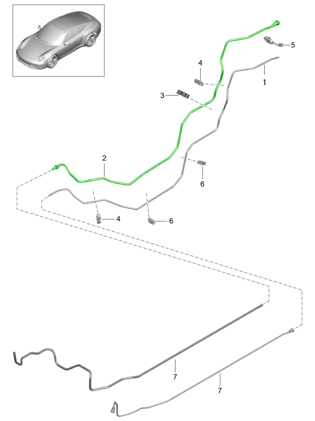 - Comme il s'agit d'une ligne conçue par un équipementier d'origine, les matériaux, le routage, les raccords et les clips de montage sont conçus pour correspondre aux spécifications Porsche de l'époque, garantissant une résistance correcte à la pression, à la vibration, à la compatibilité avec le type de carburant (essence, éventuellement sans plomb ou avec additifs) et des marges de sécurité appropriées.