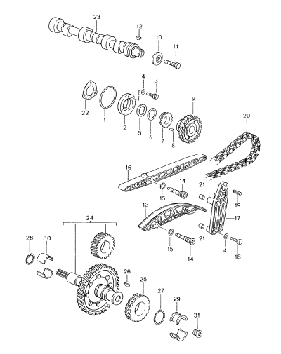 REMARQUE : Pour l'année-modèle 2001, Porsche a remplacé la chaîne à rouleaux (duplex) de l'arbre intermédiaire par une chaîne à dents. Cette liste concerne la chaîne à dents plus récente et n'est pas compatible avec les moteurs plus anciens équipés de la chaîne à rouleaux.