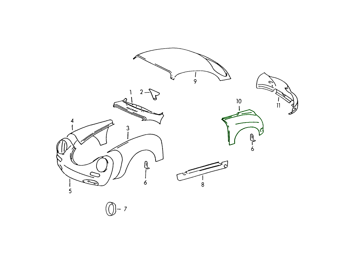 Ailes arrière et panneaux de custode Porsche d'origine et de reproduction, restituant la forme et l'alignement d'origine de la carrosserie. Disponibles en acier, aluminium et matériaux légers.