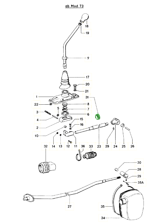 Bague de tige de changement de vitesse au pare-feu, 5 vitesses.