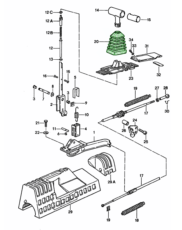 - Transférer le mouvement du levier de vitesses à la transmission.