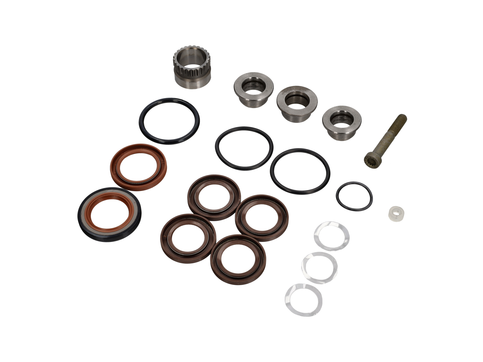 Ce kit contient tout le nécessaire pour assurer une étanchéité optimale à l'avant de votre moteur. Outre les joints d'huile, il inclut des bagues d'espacement de rechange, car celles d'origine s'usent souvent au contact du joint d'arbre et doivent être remplacées. Le kit comprend également des joints toriques et un arbre à cames, tous deux à remplacer.