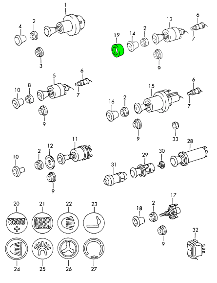 Bouton de klaxon de rechange - gauche ou droit - pour modèles 928/944/968/964 avec airbags au volant.