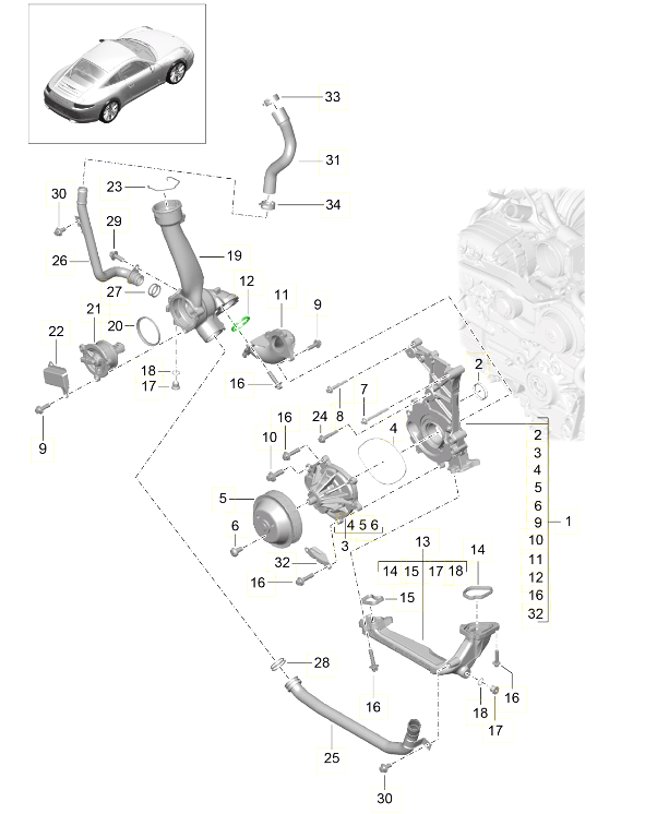 Pompes à eau/liquide de refroidissement – Refroidissement moteur fiable pour véhicules Porsche