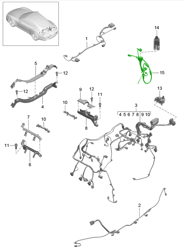Chez Design911, nous proposons une vaste gamme de faisceaux de câbles et de câbles d'origine de haute qualité pour différents modèles Porsche, notamment les 911, Boxster, Cayman, Cayenne, Macan et Panamera. Chaque faisceau et câble est conçu avec précision pour une durabilité, un ajustement parfait et une conductivité électrique optimale, afin de garantir des performances optimales à votre Porsche.