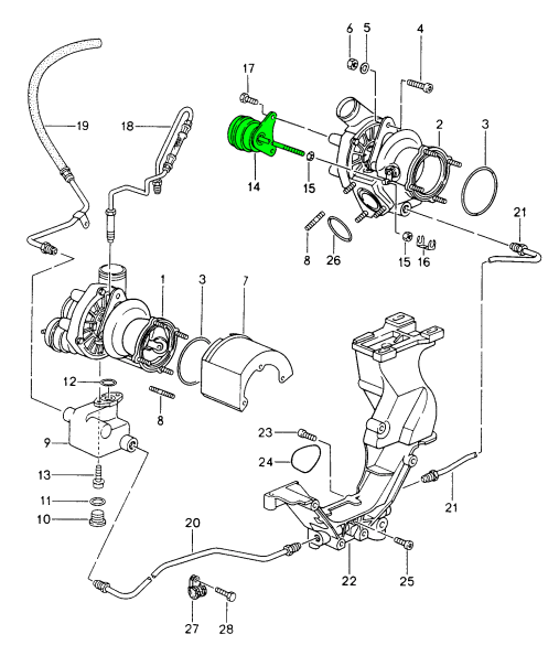 Les actionneurs de remplacement numéro de pièce 99612300010 sont assemblés avec des ressorts verts - Psi standard adaptés aux niveaux de boost d'usine égaux ou légèrement supérieurs.