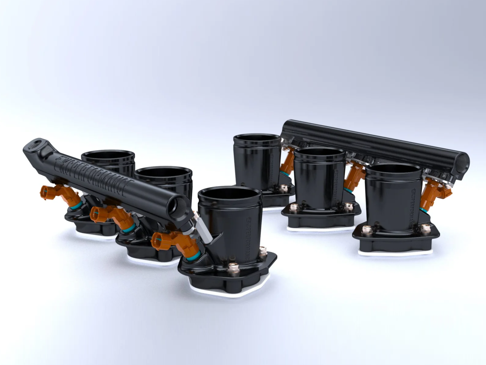 • Rampe d'injection de haute qualité : Deux rampes d'injection en aluminium usiné avec supports en acier inoxydable et plaques de verrouillage des injecteurs assurent une fixation sûre et une alimentation en carburant optimale.