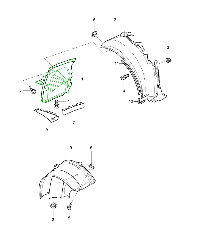 Kits de quincaillerie de qualité OEM comprenant des vis, des clips et des supports pour une installation sûre et sans vibrations des garnitures et couvercles d'arche Porsche.