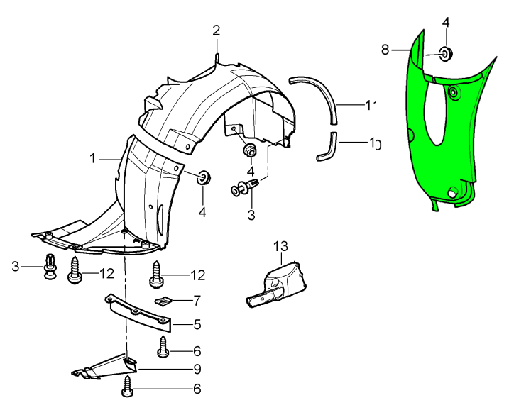Panneaux de protection installés à l'intérieur des passages de roue avant pour empêcher la saleté, le gravier et l'eau d'endommager la peinture et les composants de la suspension.