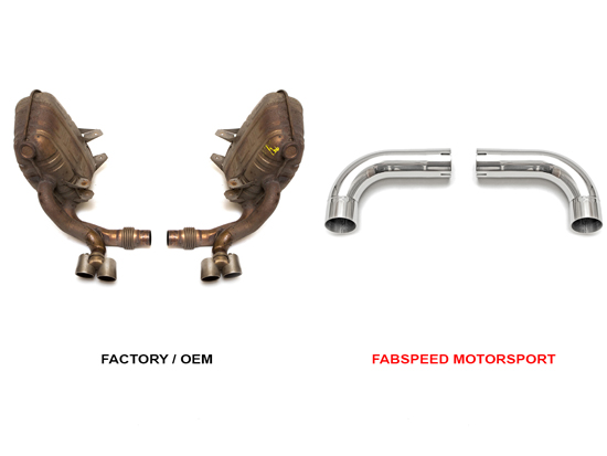 • Conçu pour être boulonné sur les collecteurs OEM Porsche, les collecteurs catalysés allemands Fabspeed HJS 200CPSI ou les collecteurs de compétition en acier inoxydable Fabspeed Motorsport Burns.