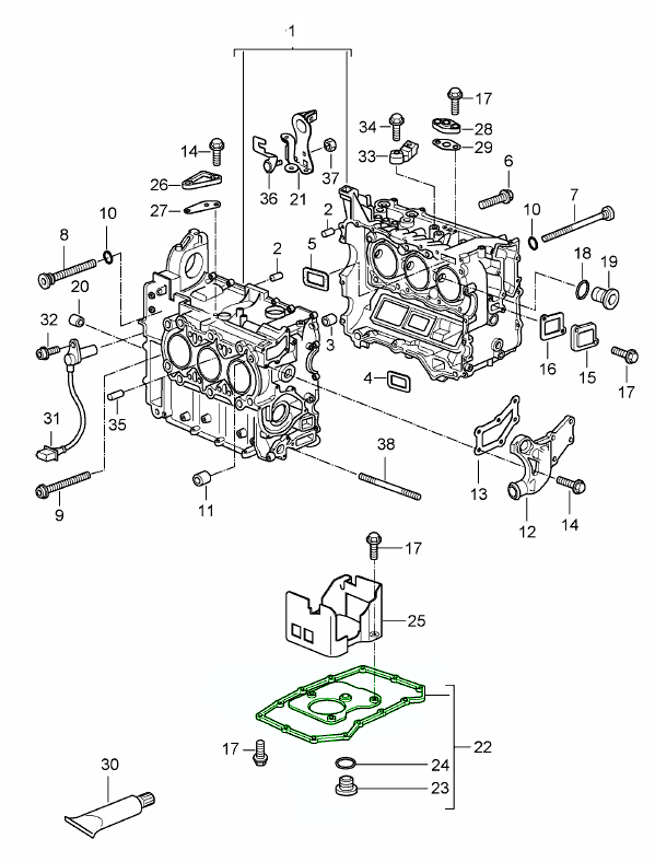 Le carter moteur constitue le cœur de chaque moteur Porsche et abrite les principaux composants rotatifs tels que le vilebrequin, les paliers et les bielles. Il assure la rigidité structurelle, la rétention d'huile et l'alignement précis des pièces mobiles du moteur, ce qui en fait un élément essentiel à la performance et à la longévité du moteur.