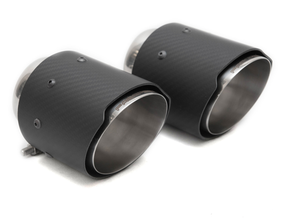 • Comprend des embouts Deluxe Dual Style de 4" dans votre choix de fibre de carbone, d'acier inoxydable poli ou de noir satiné, ou vous pouvez choisir d'utiliser vos embouts OEM.