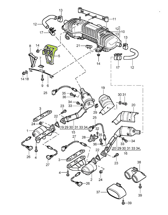 Ce kit de montage doit être utilisé lors du montage d'un échappement sport qui ne convient normalement qu'au Boxster 986 2.7L ou 3.2L.