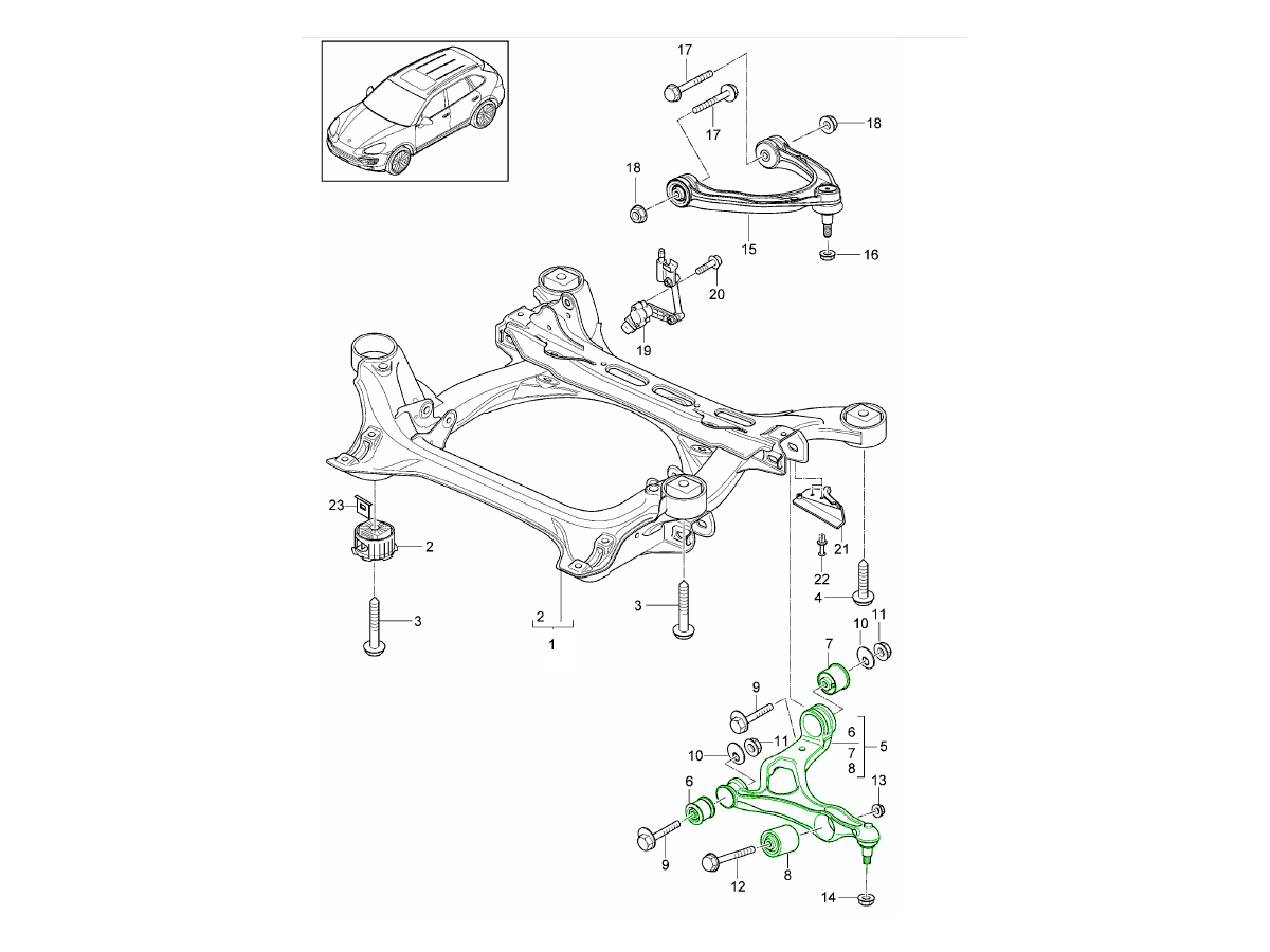• 95834105311 – Bras de suspension inférieur avant gauche