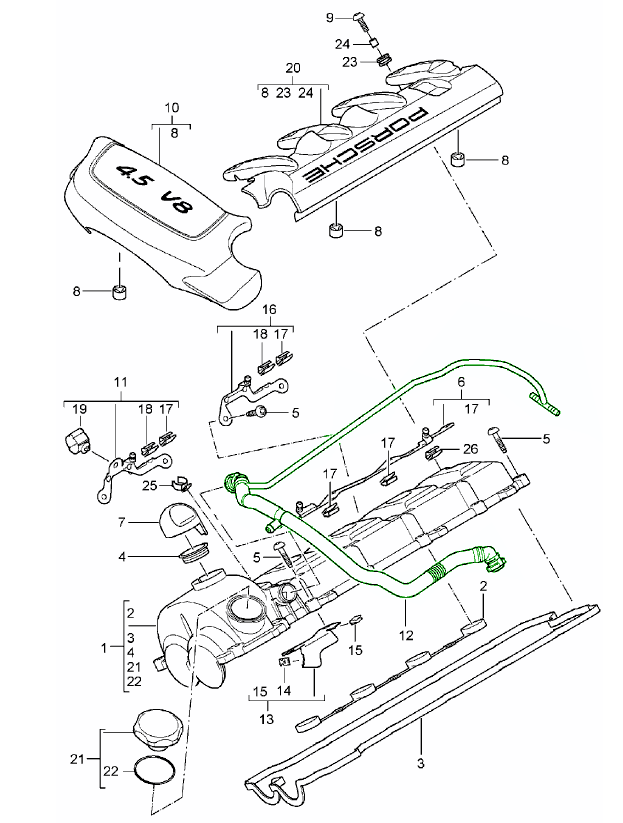 - Séparateurs d'huile, tuyaux de reniflard et conduites d'aération Porsche de haute qualité.