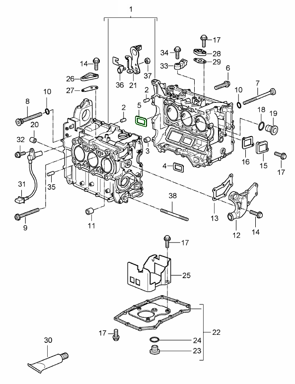Le carter moteur constitue le cœur de chaque moteur Porsche et abrite les principaux composants rotatifs tels que le vilebrequin, les paliers et les bielles. Il assure la rigidité structurelle, la rétention d'huile et l'alignement précis des pièces mobiles du moteur, ce qui en fait un élément essentiel à la performance et à la longévité du moteur.