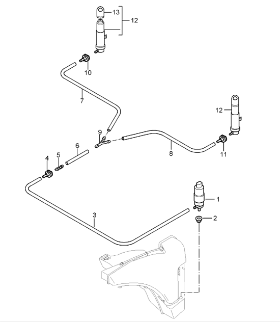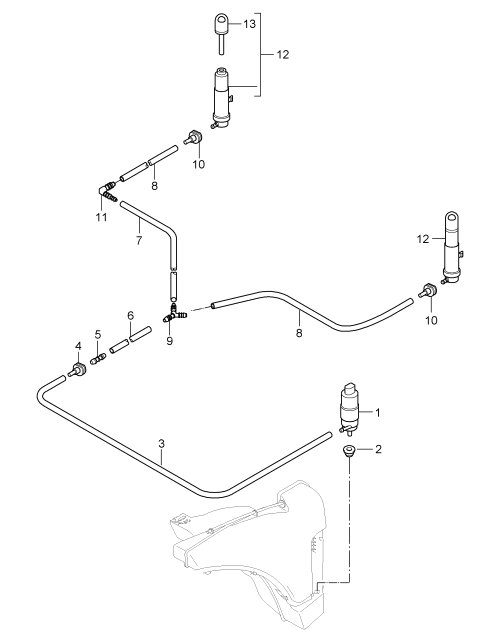 - Pompe de lave-glace : Un moteur électrique qui pressurise le liquide et le pousse à travers les conduites vers le