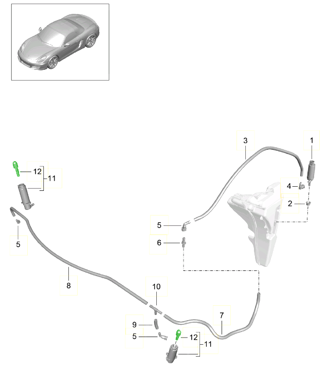 Chez Design911, nous proposons une gamme complète de composants de lave-glace d'origine et de haute qualité, notamment des réservoirs, des pompes de lave-glace électriques et des gicleurs de précision, pour tous les modèles Porsche tels que la 911, le Boxster, le Cayman, le Cayenne, le Macan et la Panamera. Chaque pièce est conçue pour offrir un niveau de compatibilité et de performance élevé, pour un nettoyage fiable et une fiabilité à long terme.