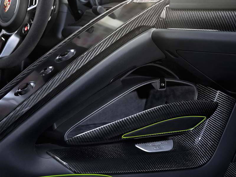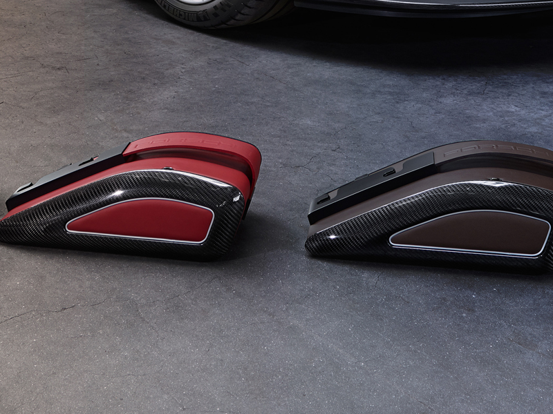 Le kit de rangement 918 Spyder contient le sac pour la console centrale et le sac pour la boîte à gants du kit de bagages 918 Spyder.