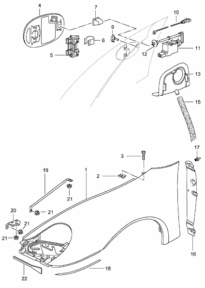 Reproduction authentique des ailes avant et des accessoires pour les modèles Porsche classiques tels que la 356, la 911 Classic, la 930 et la 964, conservant le style et les contours d'origine.