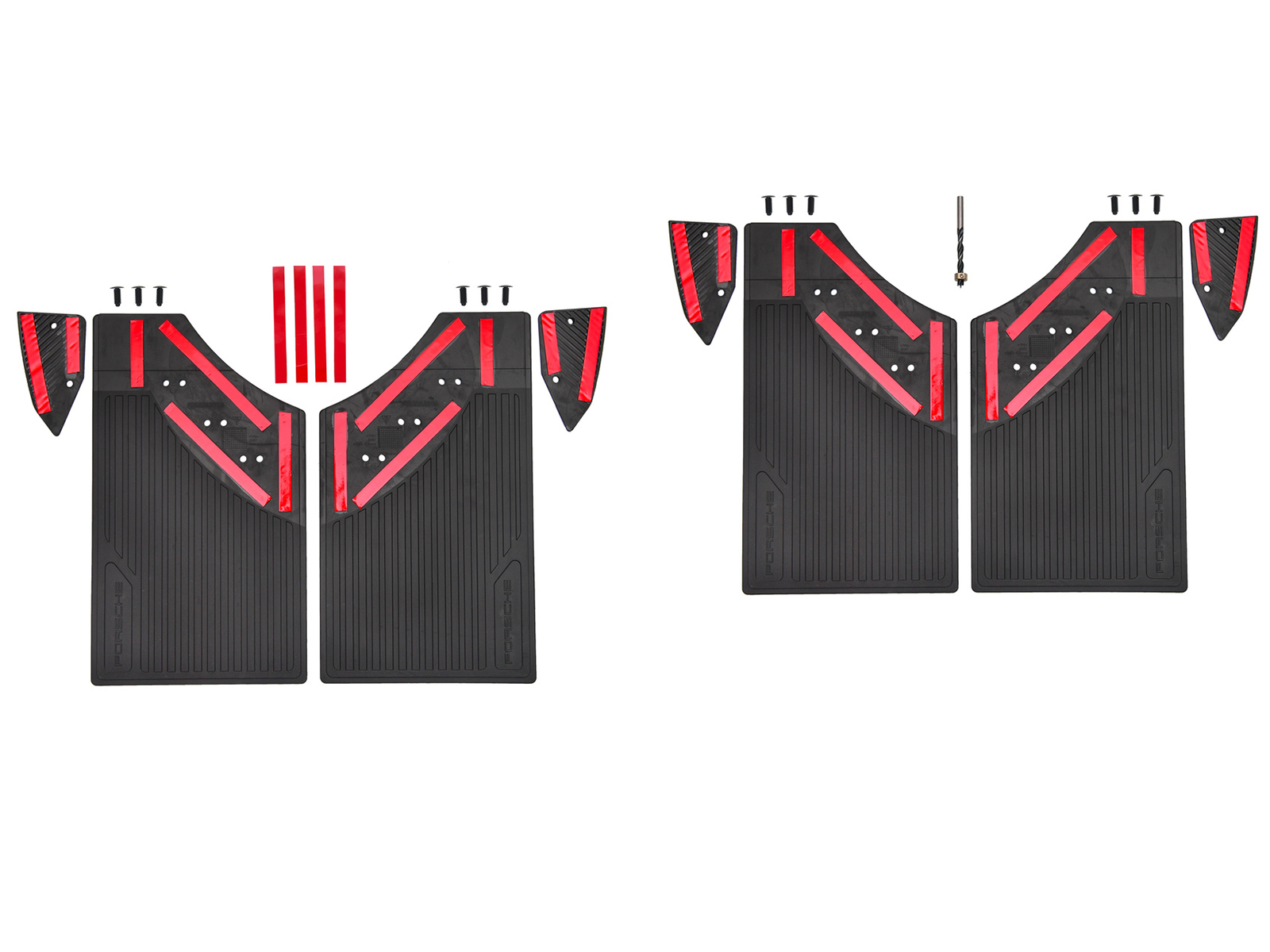 Un compagno ideale per ogni avventura, sia su strada che fuoristrada. I paraspruzzi per la guida fuoristrada prolungata impediscono che neve, acqua e sporcizia della strada vengano lanciati all'indietro, rafforzando visivamente il carattere fuoristrada della Cayenne E1. Sono inclusi distanziali per garantire una vestibilità sicura e precisa per i veicoli, indipendentemente dal fatto che abbiano o meno estensioni del passaruota. I paraspruzzi nel caratteristico design Porsche con logo 'PORSCHE' in rilievo sono disponibili per gli anni modello dal 2003 al 2010.