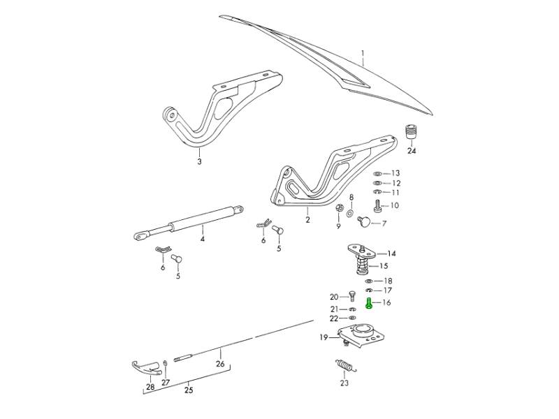 Il bullone esagonale M6 x 16 per serratura del coperchio è un bullone di fissaggio con specifiche OEM progettato per fissare il meccanismo di chiusura/blocco del coperchio sui modelli Porsche 911. Questo bullone M6 ha una lunghezza di 16 mm e viene utilizzato per montare o fissare i componenti del sistema di chiusura del coperchio, garantendo un allineamento corretto, un fissaggio sicuro e un funzionamento di bloccaggio affidabile.