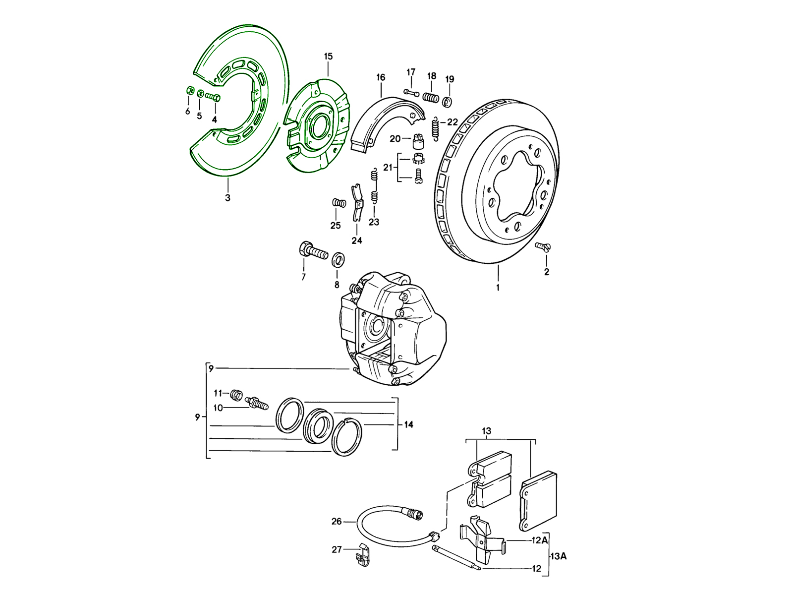 Questa piastra di supporto per disco freno posteriore (paraspruzzi) è progettata per i modelli Porsche 993 prodotti nel 1994 , adattabile sia all'asse posteriore sinistro che a quello destro . Progettato secondo le precise specifiche di primo impianto (OE), questo componente replica la funzione del componente di fabbrica, proteggendo il disco freno e il gruppo rotore da acqua, polvere e detriti stradali per garantire prestazioni di frenata costanti e una maggiore durata dei componenti.