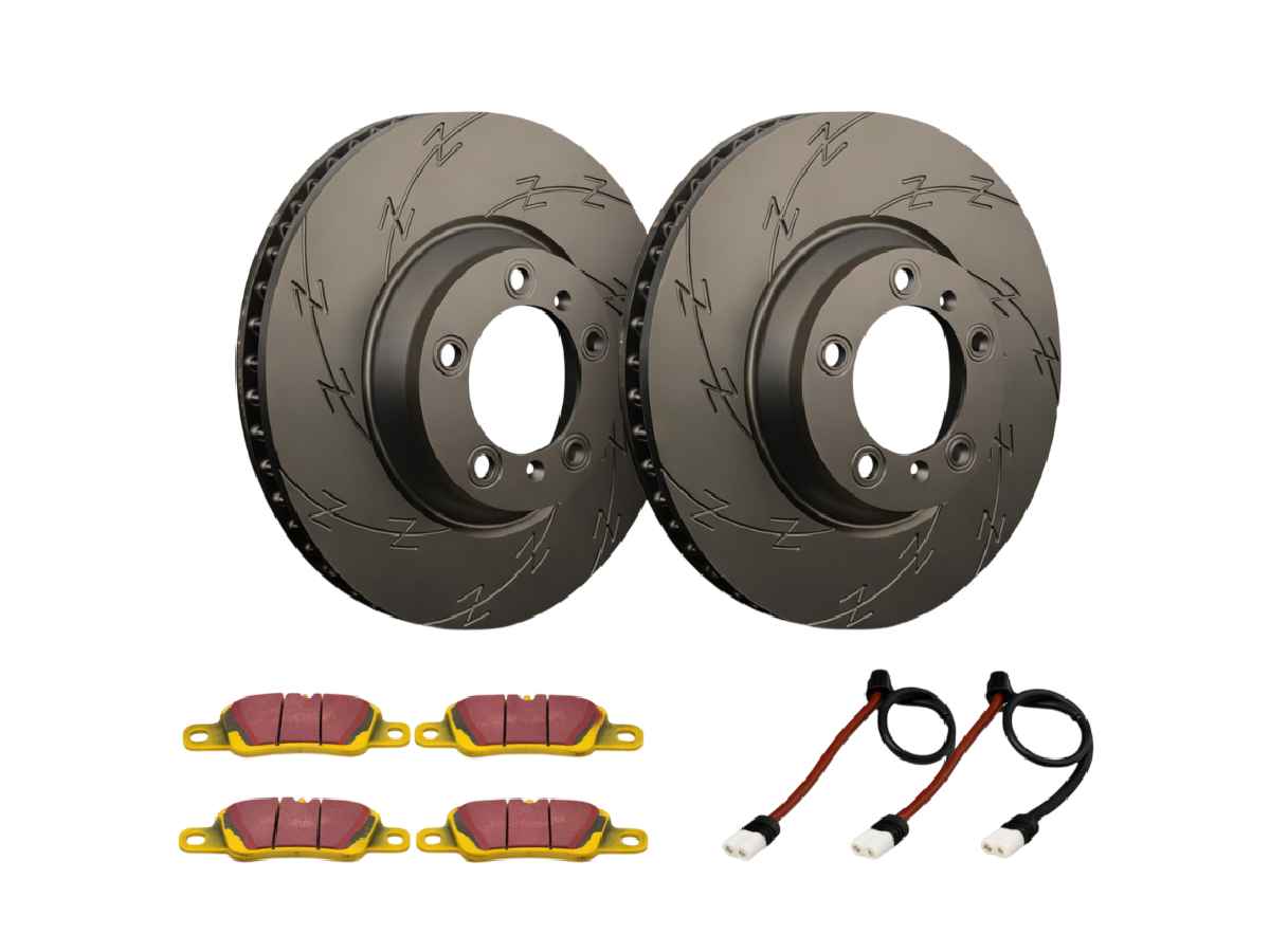 Il set di dischi e pastiglie freno anteriori sportivi con dischi freno Zimmermann Black Z e pastiglie freno EBC YELLOWstuff FAST ROAD rappresenta un aggiornamento bilanciato delle prestazioni per la Porsche 997.2 Carrera 2 e Carrera 4 da 3,6 litri. Progettato per migliorare la potenza di frenata, il controllo del calore e la sicurezza del pedale, questo pacchetto freni anteriori abbinato offre una frenata più potente e costante rispetto ai componenti OEM standard, ideale per la guida veloce su strada e l'uso intenso.