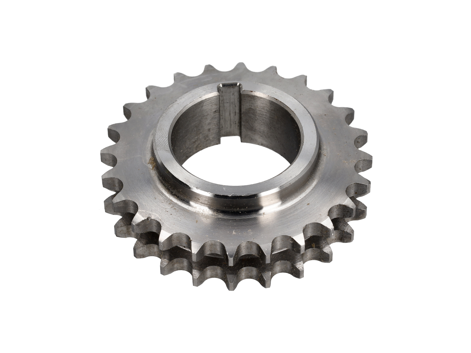 - Il pignone della catena di distribuzione montato sull'albero intermedio consente il corretto trasferimento del moto rotatorio dall'albero motore e dalla catena di distribuzione al comando dell'albero a camme o ai componenti ausiliari. In sostanza, garantisce la corretta fasatura del treno valvole.