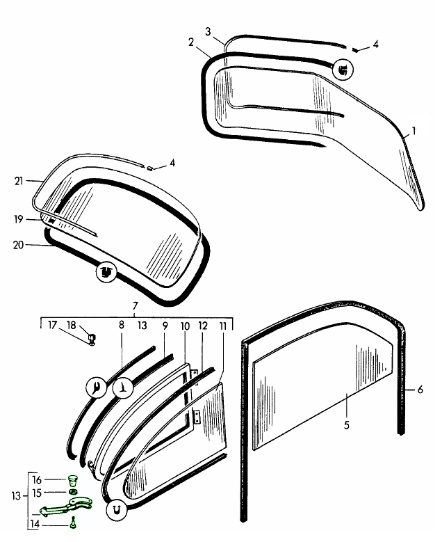 Guarnizioni in gomma, elementi di finitura e cerniere di qualità OEM per un'installazione a tenuta stagna e un funzionamento fluido dei finestrini laterali.