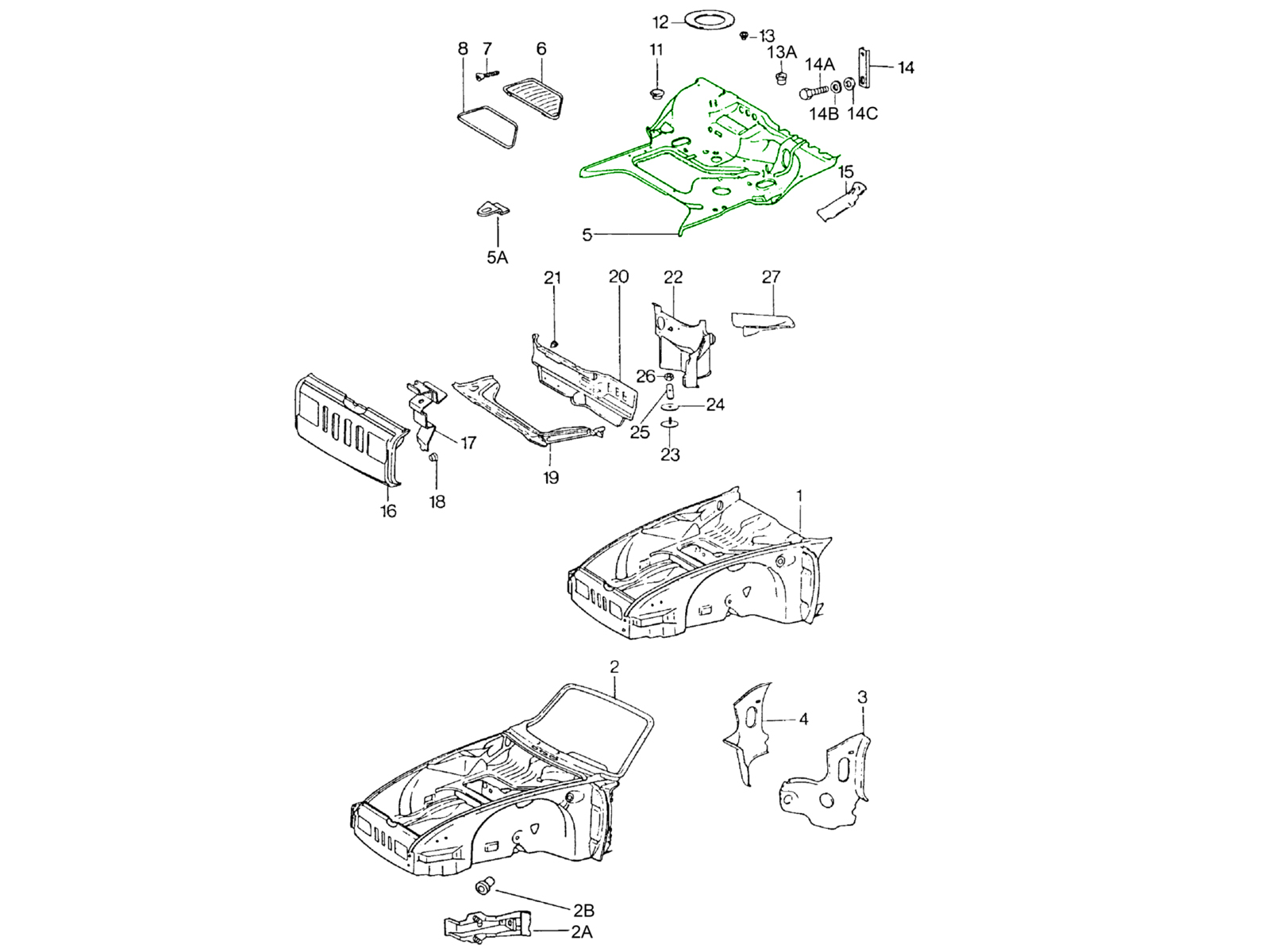 Riproduzione accurata delle paratie e dei pannelli del pavimento anteriori, progettati per durare a lungo e in linea con l'ingegneria originale Porsche.
