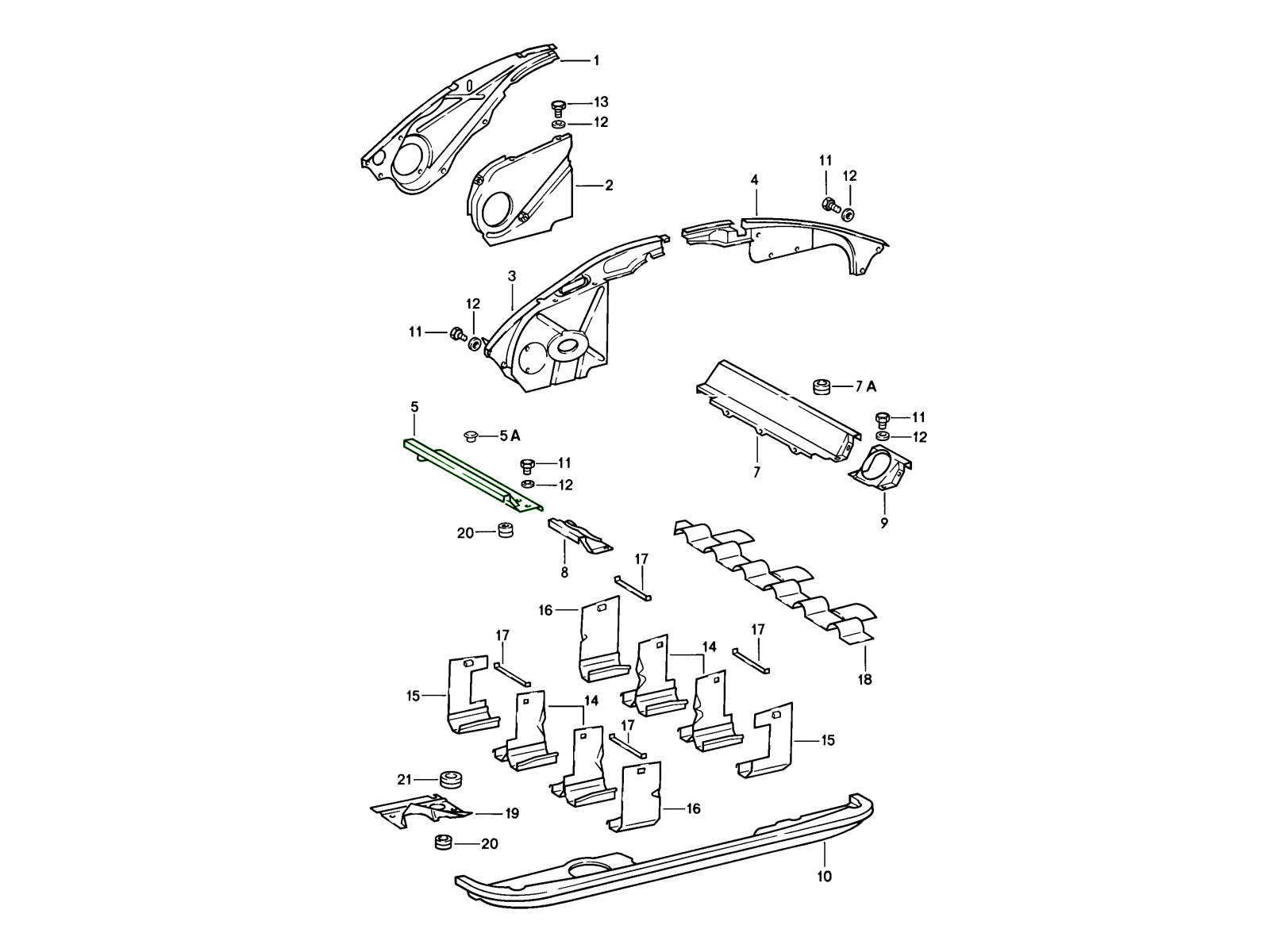 Nota: le Porsche 911 dal 1975 in poi utilizzavano il pannello sinistro con foro (per il tubo dell'aria condizionata), le 911 prima del <<1975 utilizzavano il pannello senza foro codice prodotto 91110685300