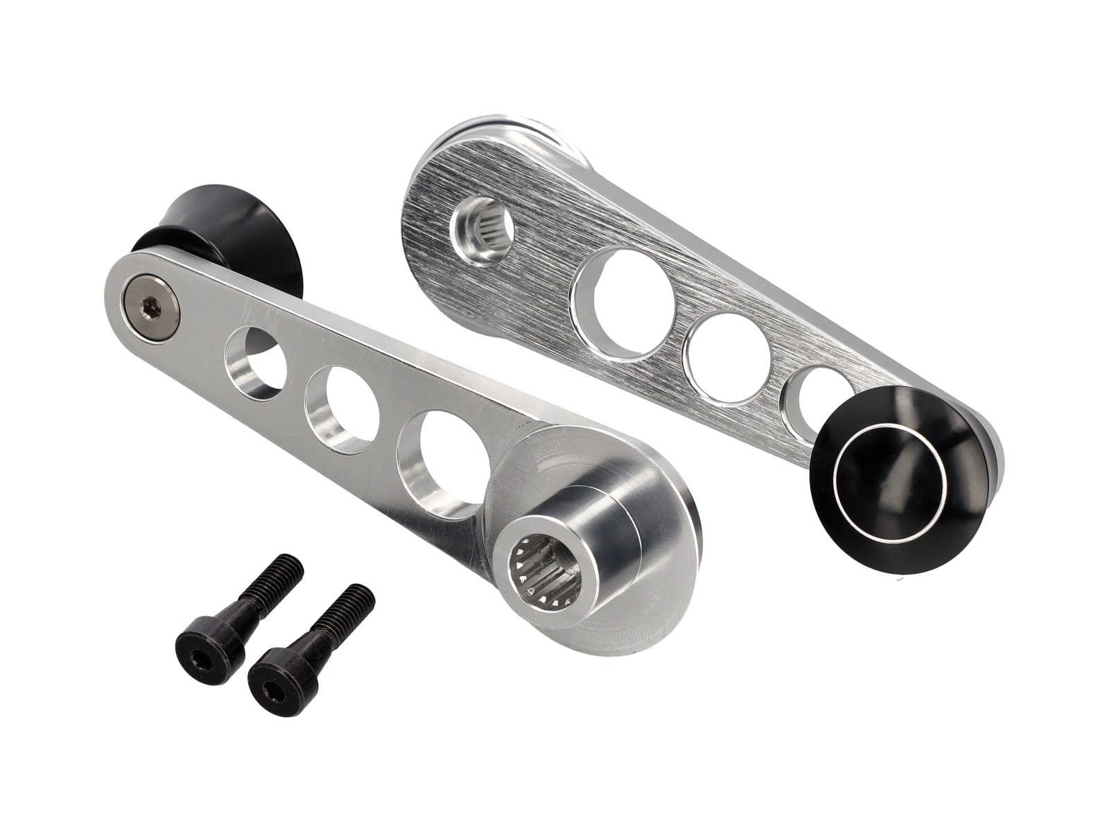 Stanco di guardare quelle manovelle di plastica dei finestrini di fabbrica screpolate o sbiadite? Le scanalature di plastica sono state rimosse e non funzionano più? Abbiamo la soluzione. Le manovelle manuali in alluminio billet Rennline sono realizzate artigianalmente con qualità per una vestibilità e una finitura superbe. Il complemento perfetto per le tue maniglie in alluminio, i pedali o altri accessori in alluminio. Queste manovelle sono disponibili con finitura anodizzata trasparente o nera. Si adattano a tutte le auto 911, 912 e 930 con finestrini manuali dal 1965 al 1989. Si installano in pochi minuti con semplici utensili manuali.