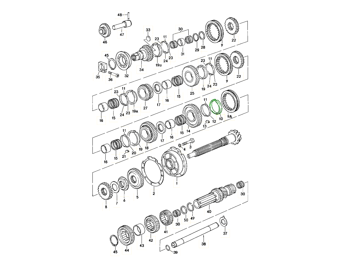 Durante la manutenzione del cambio, si consiglia vivamente di sostituire gli anelli sincronizzatori, le fasce freno e i denti di cane in un set completo per garantire un'usura bilanciata e un funzionamento costante.