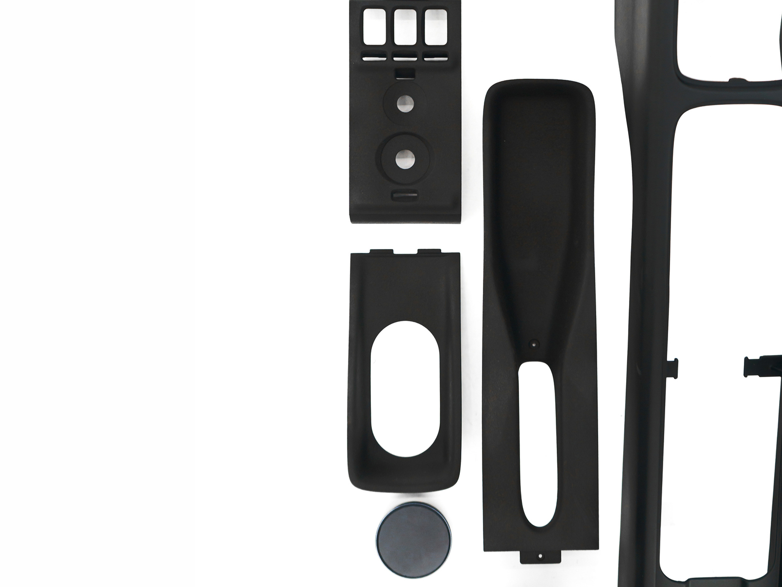 Non ci siamo limitati alla sola console. Abbiamo progettato anche un set completo di pannelli/cornici coordinati per pulsanti e manopole , in modo che tutto si allinei perfettamente e risulti armonioso una volta installato. Ogni elemento segue la stessa logica modernista: minimale, geometrica e focalizzata esclusivamente sulla funzionalità. Il risultato è una console che appare come un'unica forma unitaria, piuttosto che come un insieme di parti separate.