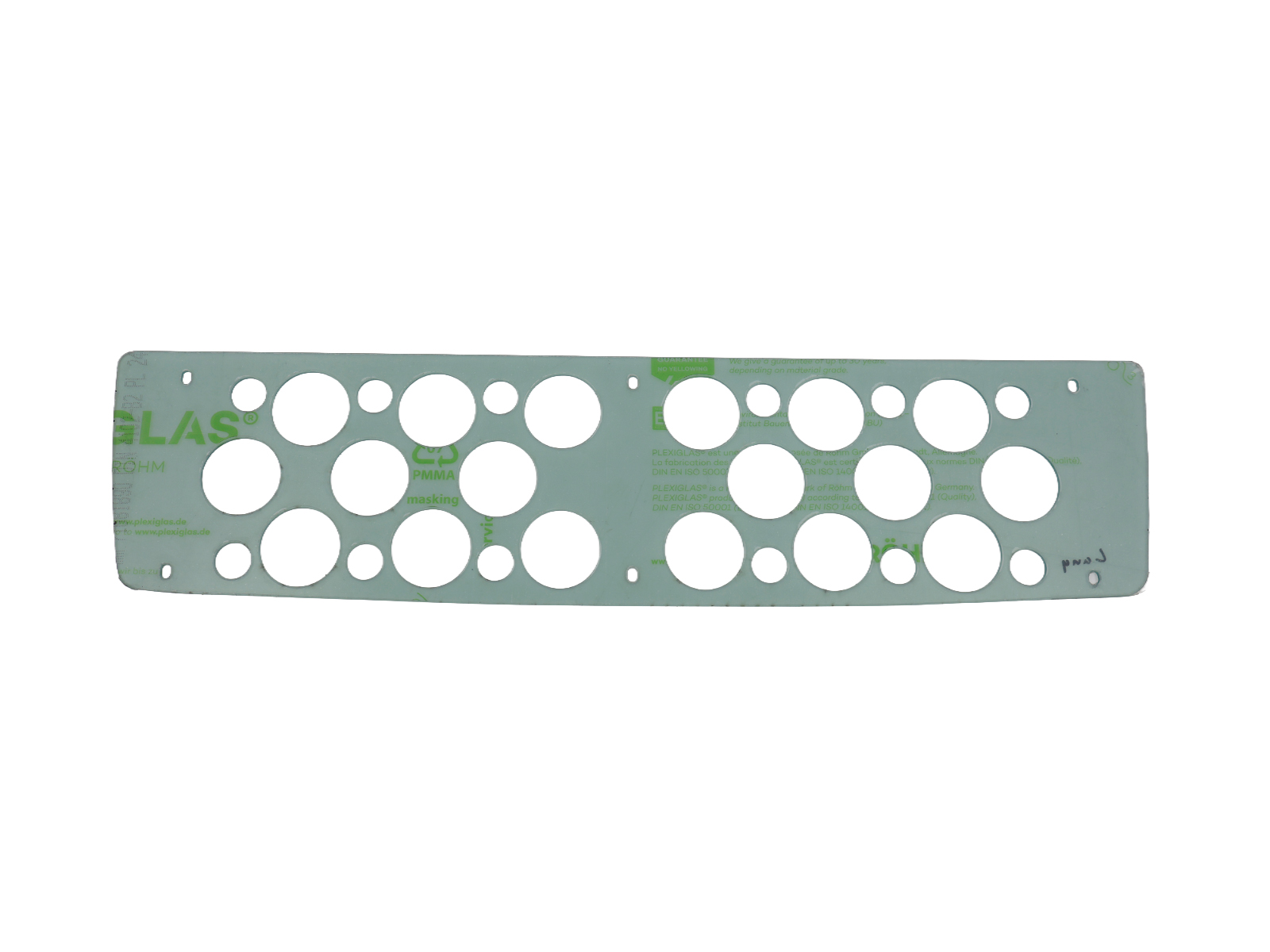 Piastra in macrolon di colore verde con fori per il montaggio tra lo spoiler posteriore Singer look 964 e la griglia in alluminio.