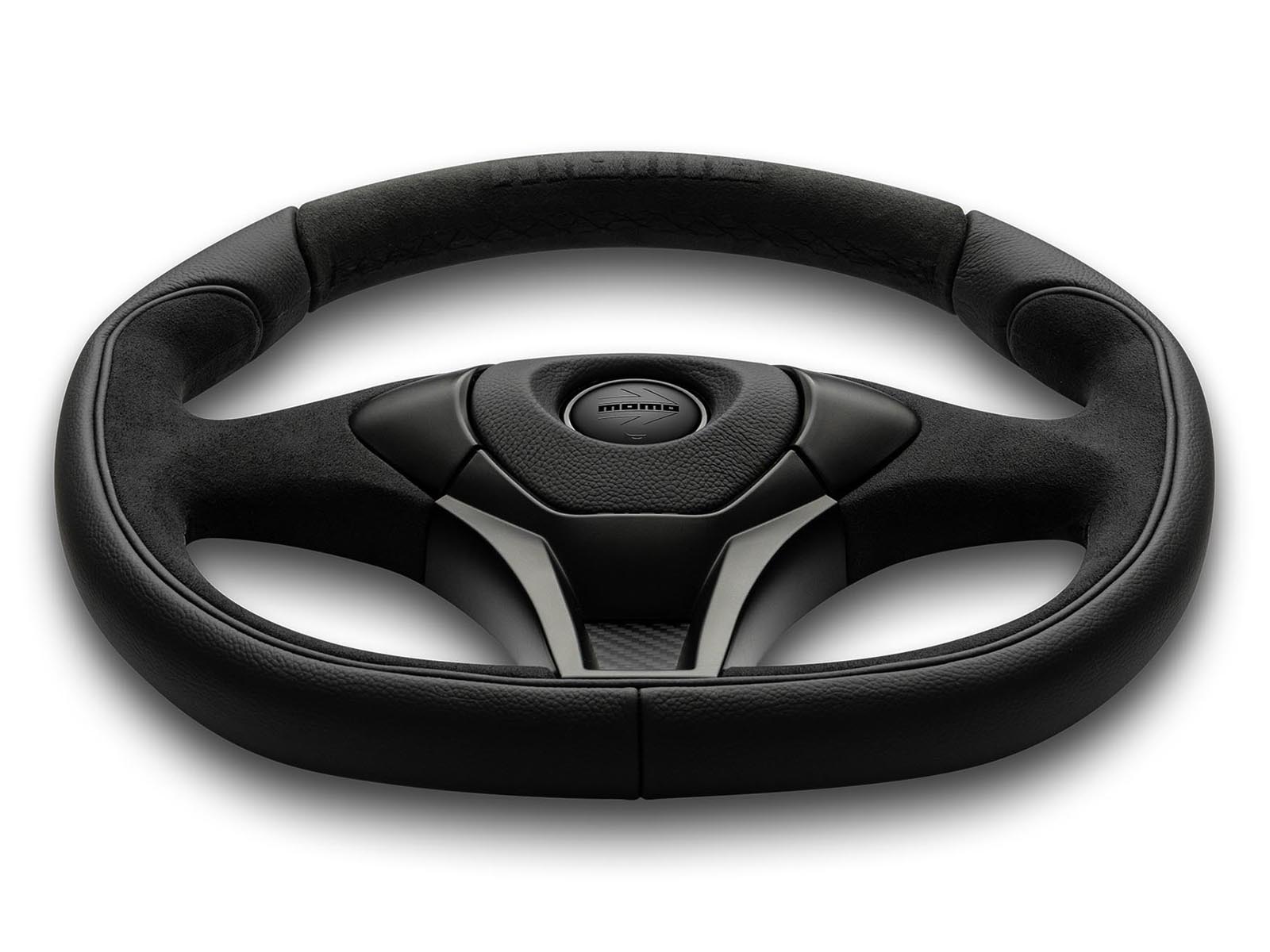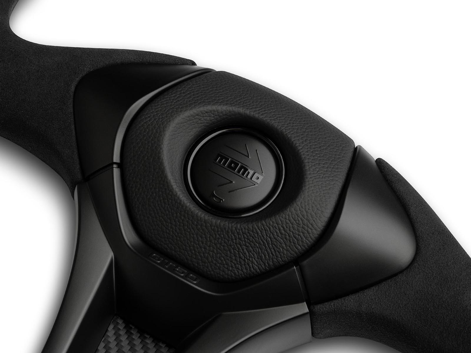 • Nuovo inserto centrale in pelle con il pulsante a freccia nero opaco MOMO per un aspetto più deciso e aggressivo