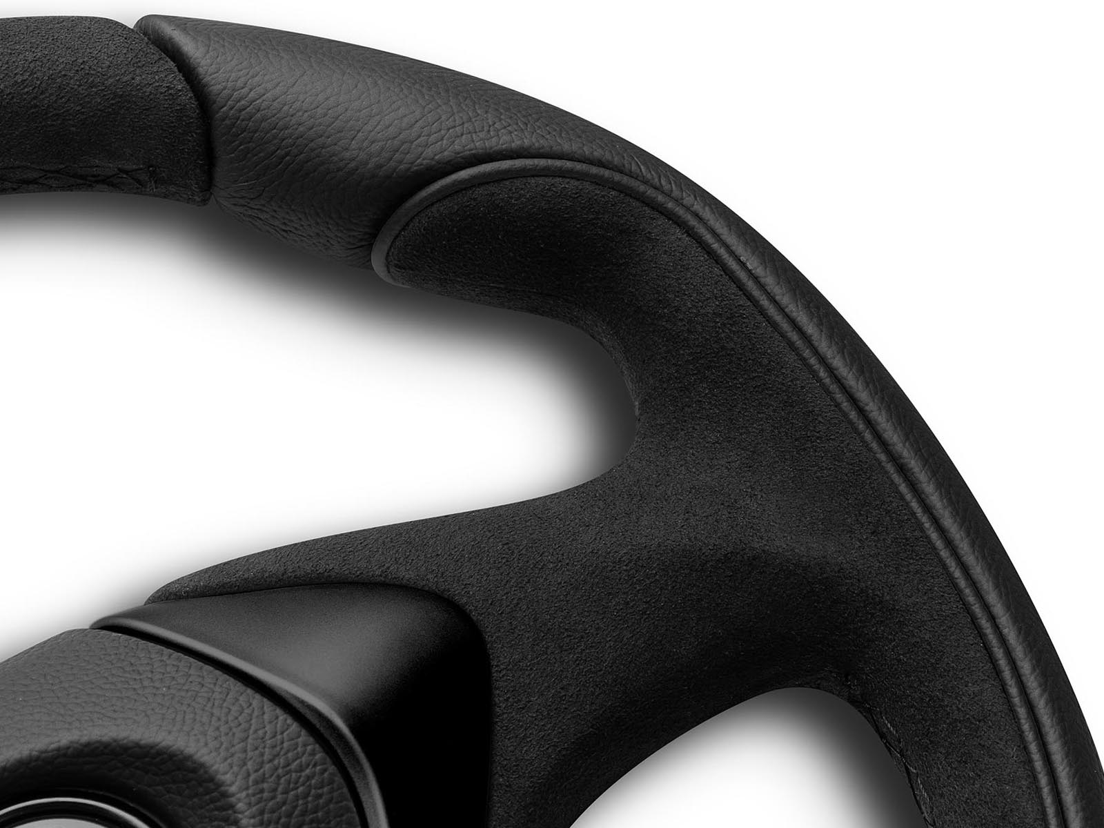 Il volante MOMO MOD.07 è progettato per l'uso in berline e auto da rally con il piatto profondo che offre al guidatore il massimo controllo e il contrassegno in pelle gialla sulla parte superiore che fornisce un rapido riferimento alla posizione dello sterzo. Rifinito in pelle scamosciata nera o pelle nera, il volante presenta 3 razze in alluminio nero e il logo MOMO Italy sul pulsante del clacson. Tutti i volanti da corsa MOMO sono prodotti in Italia con la massima qualità con telai in alluminio anticorodal. Il rivestimento in pelle scamosciata o pelle è incollato al bordo, anziché essere cucito, per fornire una finitura senza cuciture per maggiore comfort e durata.