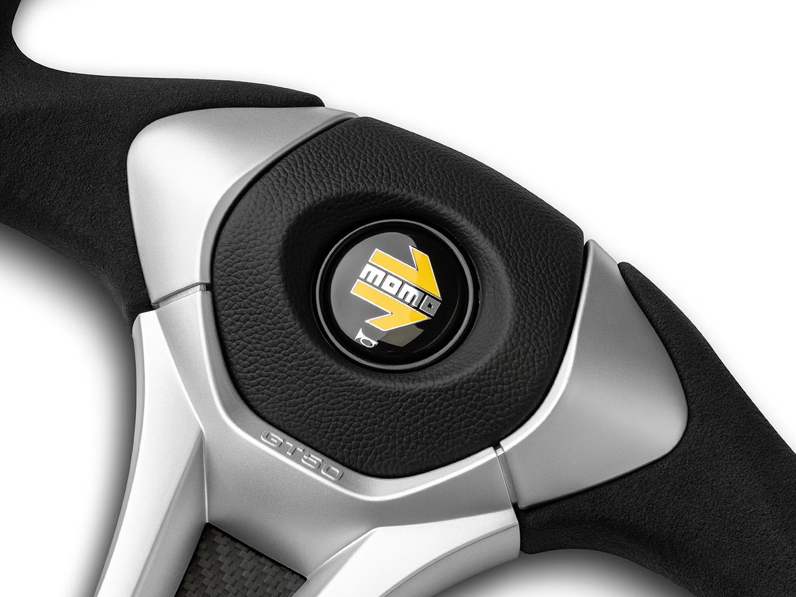 • Nuovo inserto centrale in pelle con pulsante a freccia MOMO per un aspetto più deciso e aggressivo