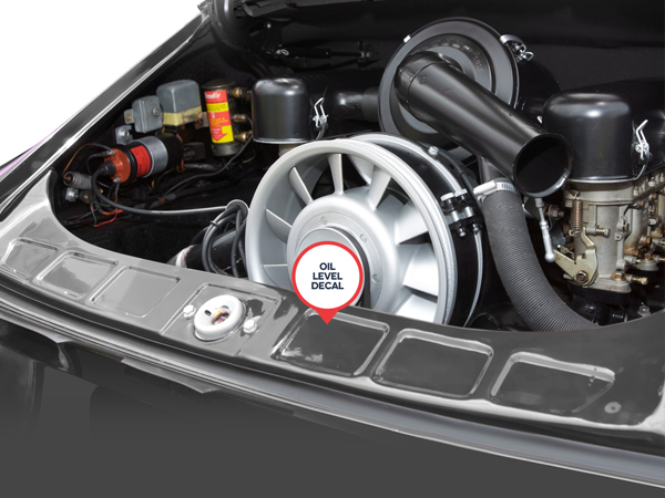 Mantenendo chiare e precise le decalcomanie del livello dell'olio, i proprietari hanno la garanzia che la loro Porsche rimanga meccanicamente precisa e visivamente fedele alla sua tradizione.