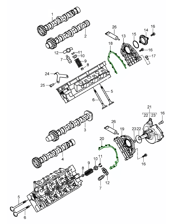 Questi componenti fungono da guscio protettivo per il sistema di distribuzione e i canali superiori dell'olio del motore. Impediscono l'ingresso di contaminanti, gestiscono la pressione interna e contribuiscono a mantenere una lubrificazione costante.