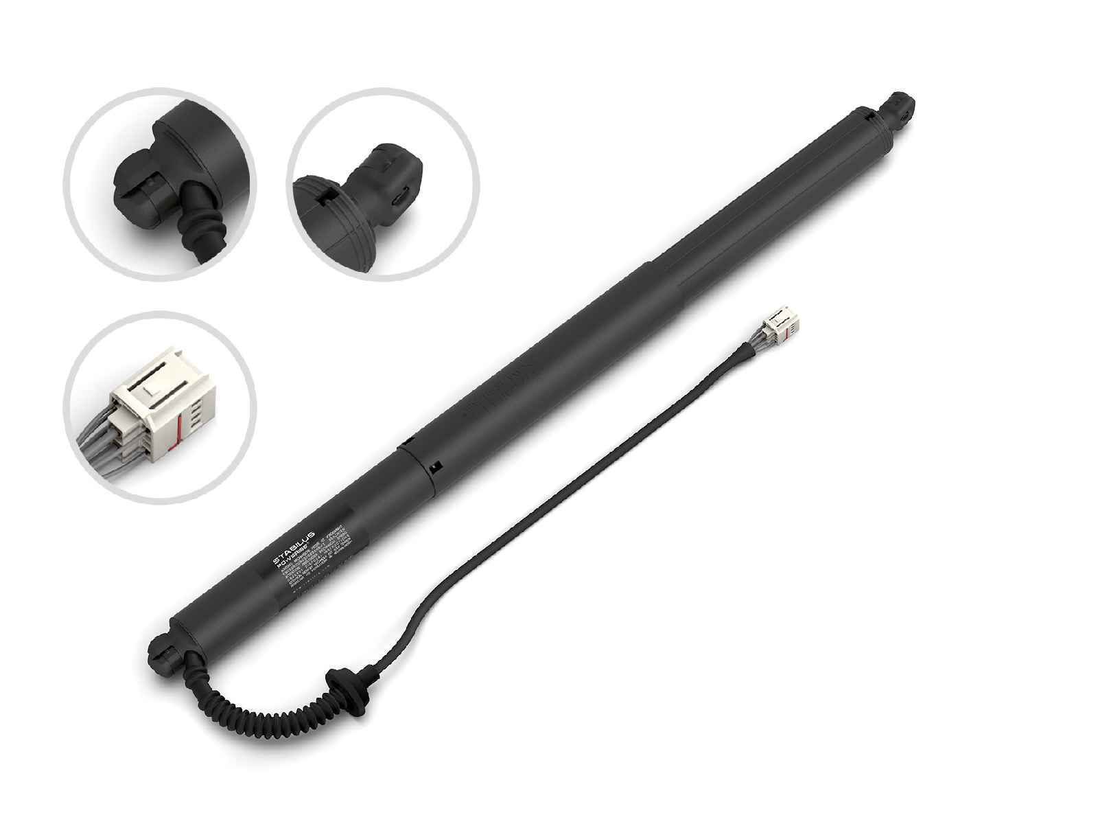 Schema rif. n. 43Prodotto da Stabilus, specialista mondiale nella tecnologia degli ammortizzatori e del controllo del movimento, questo montante elettrico per portellone posteriore integra un motore interno e un meccanismo di smorzamento per gestire con precisione il movimento del portellone posteriore, supportandone al contempo il design distintivo.