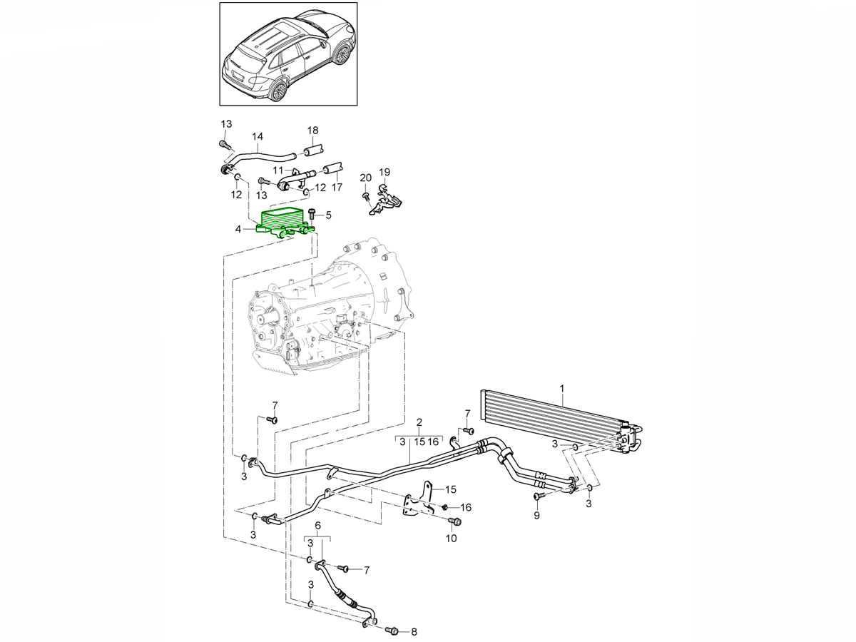 Tiptronic / Radiatore olio cambio / Radiatore / Tubo olio (PR:D19,G1G) Cayenne 92A (958) 3.0L HYBRID 2011-18 360-020
