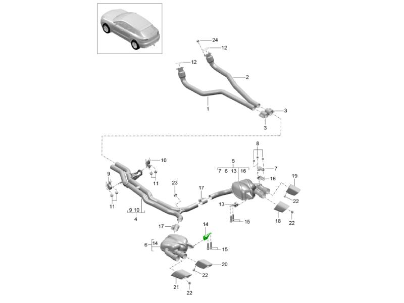 Impianto di scarico / Versione sportiva / Silenziatore anteriore / Silenziatore posteriore (Modello: CNCC,CNC, CYNA,CYPA, CYP,CYNB+ PR:0P8,0P9) 95B.1 Macan 2.0L 2014-18 202-065