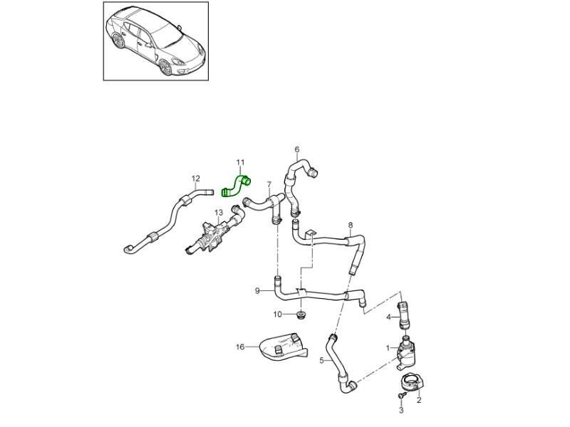 Linea aria calda/Linea mandata/ritorno/box acqua/Riscaldatore ausiliario (PR:850,851) Panamera 970 (G1) 2010-16 813-005