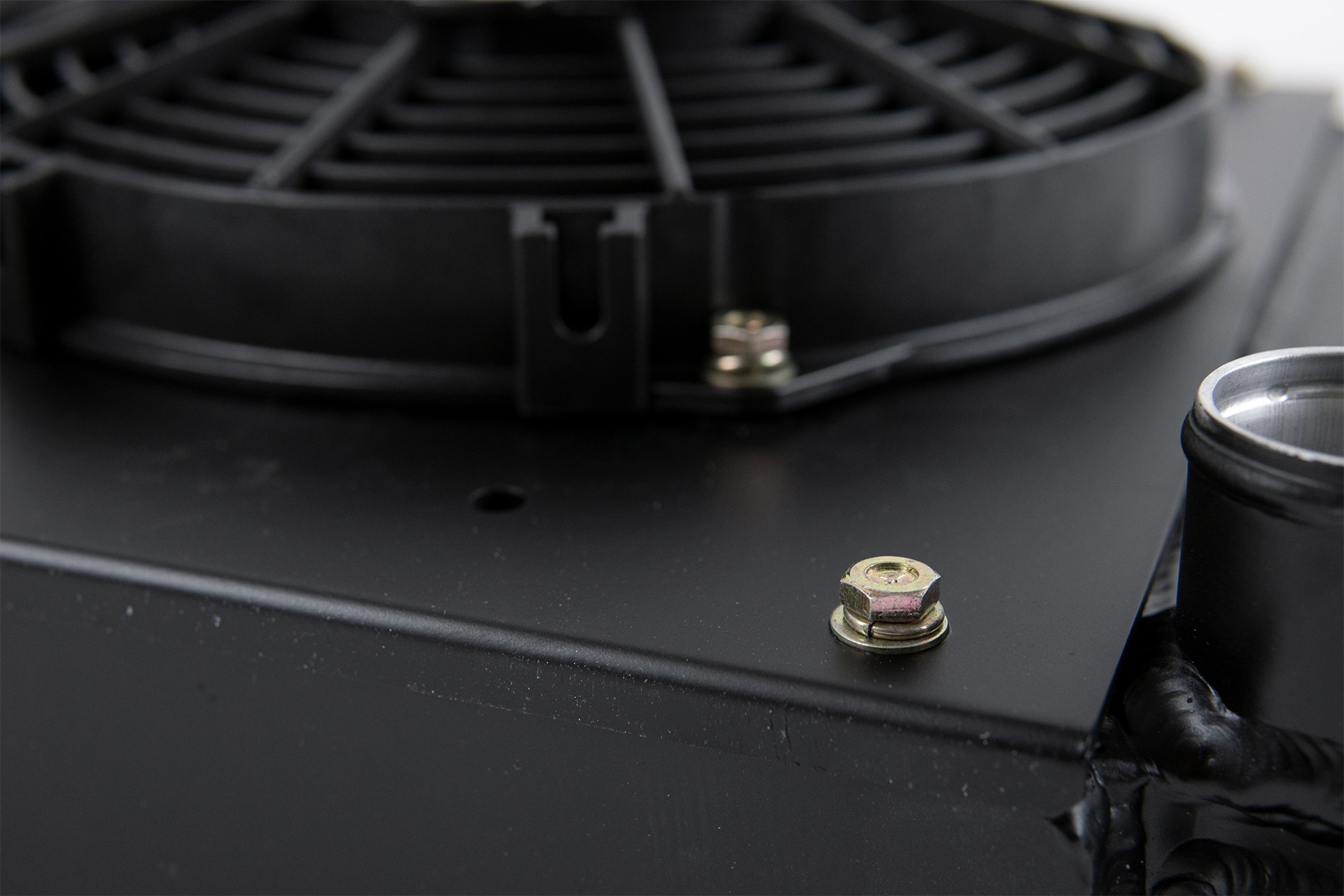 Hoewel de OEM-ventilatoren functioneel zijn, is hun ontwerp nog steeds afkomstig uit de jaren 80 en laat het nog veel ruimte voor verbetering. De technologie van elektrische ventilatoren is in de loop der jaren sterk verbeterd en nieuwere ventilatoren kunnen efficiënter meer lucht verplaatsen met een lagere belasting van het elektrische systeem van uw auto. De lasergesneden behuizing zorgt voor een uiterst efficiënte werking van de ventilatoren die lucht door de radiator trekken. De platte, dubbele 9-inch SPAL-ventilatoren verplaatsen 1180 CFM (ca. 1180 kubieke voet) lucht.